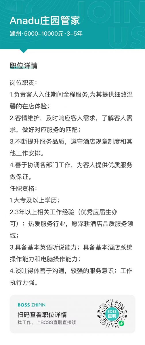 阿那度(Anadu)度假庄园招聘-Anadu庄园管家